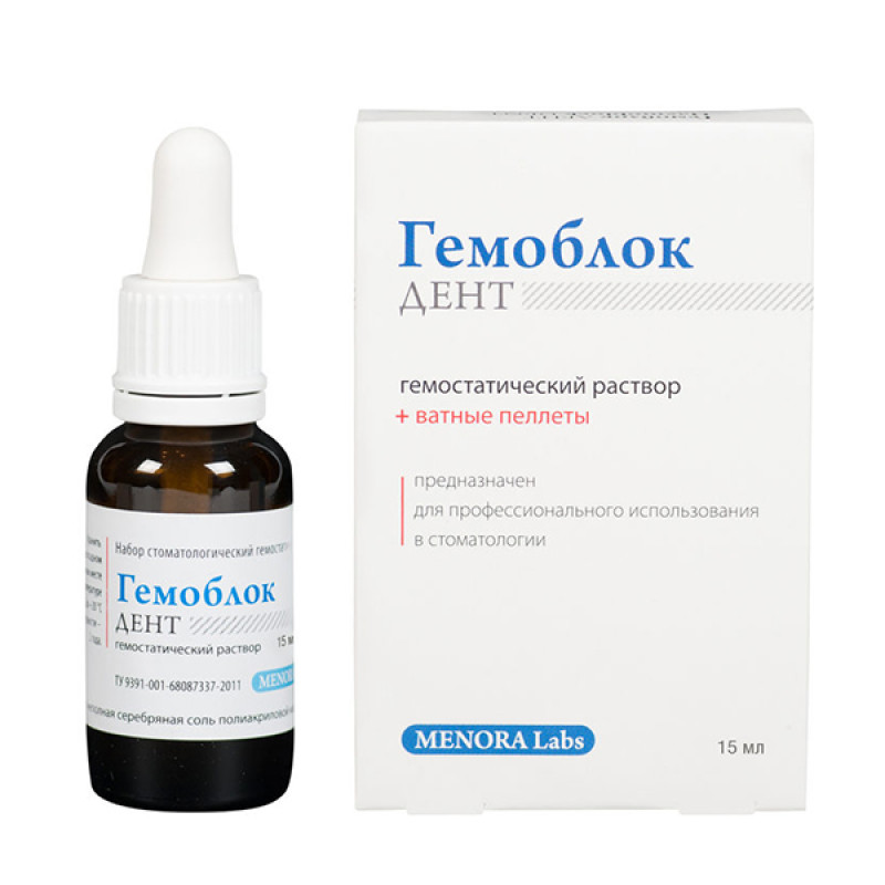 Набор стоматологический гемостатический «Гемоблок ДЕНТ» применяется для остановки капиллярного кровотечения при удалении зубов, снятии камней, обработке зубных лунок и после прямого снятия слепков, а также при кровотечениях из десны в пришеечной области, апикальном и десневом кровотечениях